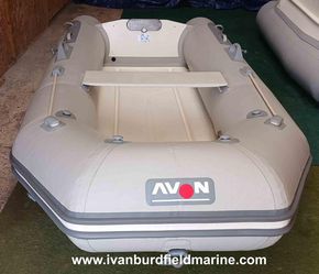 Avon 310 Riblite - This is a rare mint as new condition hypalon Rib that cleverly folds at the transom and fits into a sleeve - 6 foot 6" x 38" x 10" thick. Top of the range Rib that weighs just 43kg, making these very popular for ease of handling. Comes with oars, seat, pump and sleave. We have a comprehensive range of suitable outboards - both 2 or 4 stroke.