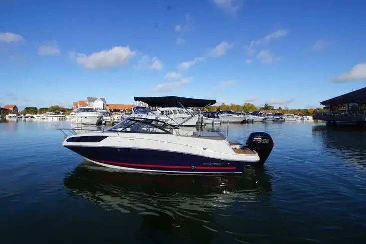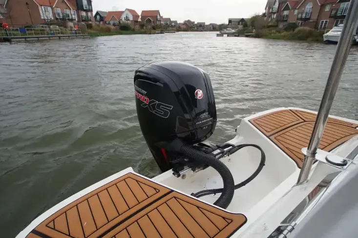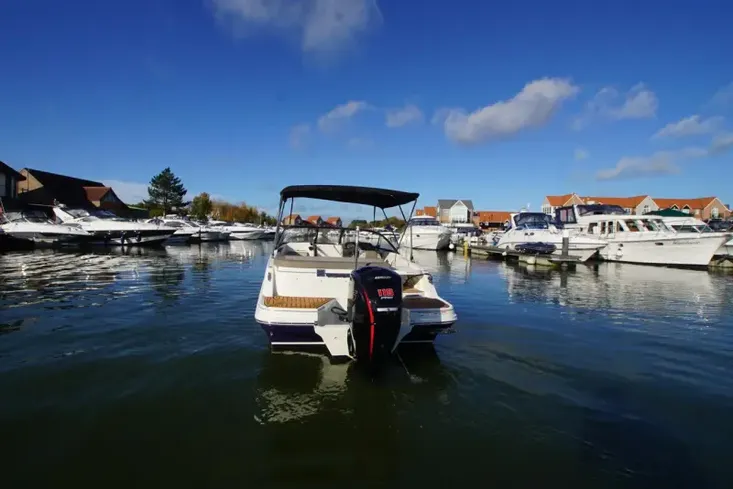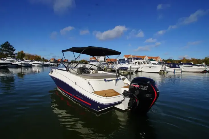 Bayliner VR5, 2021 build and model year and equipped with a Mercury 115HP outboard with low hours and befits from being serviced in November 2025. This two owner Burton Waters stock boat is presented in immaculate condition having just been power polished and antifouled. This popular cuddy stands out with her Whale Blue hull and has a specification that includes: