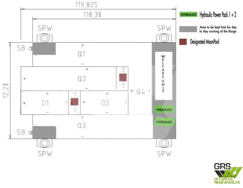 Barge assembly layout can be altered to suit customers’ requirements. (I.e. Extra Moon pools)