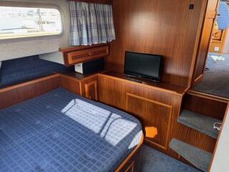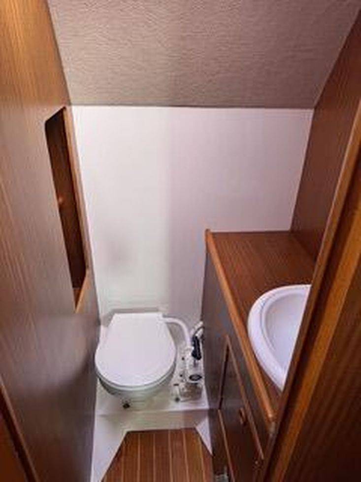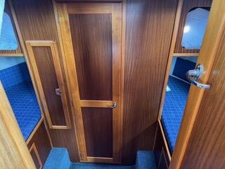The accommodation consists of two en suite cabinsfore and aft. The aft master stateroom has a large double berth to the port side with a large double door wardrobewith storage shelves and a good sized WC/shower room. The fore cabin has two good sized single berths to the portand starboard sides with WC/washroom centered in the bow between the two berths. Both WC's are connected to theholding tank with overboard and deck discharge.