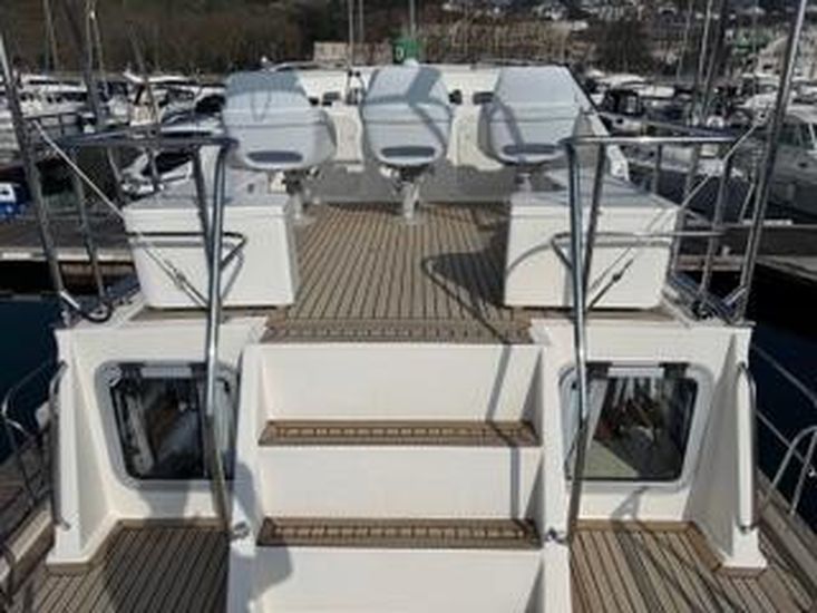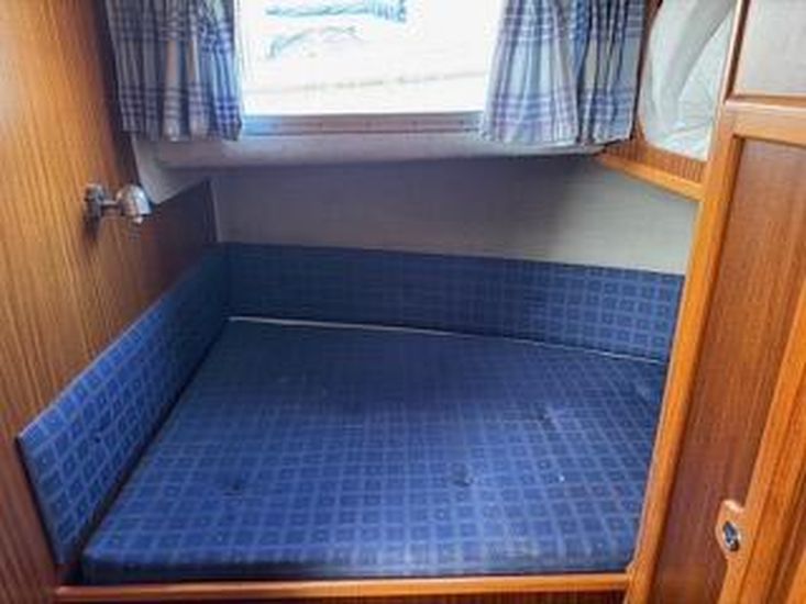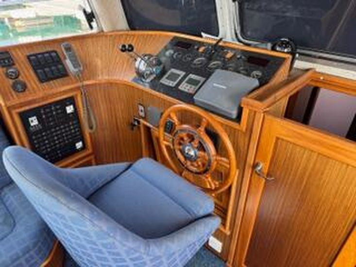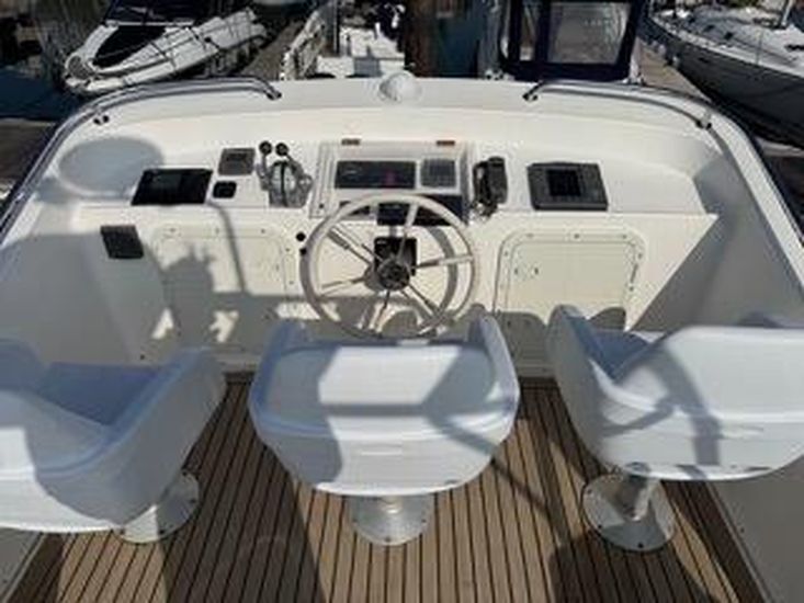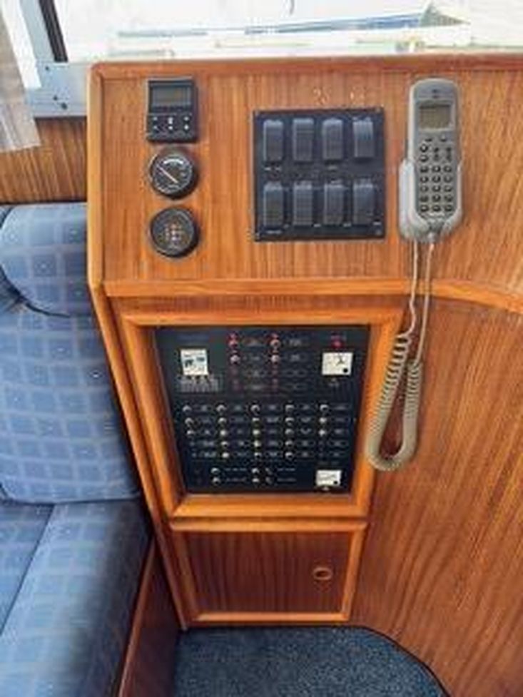 Synthetic teak style decking, 3 station control electric anchor winch with 30m chain, warm air heating, dual stationRaymarine radar, chart-plotter GPS (lower Chart plotter needs attention) dual station auto pilot and VHF radios, trimtabs with gauges, holding tank, 2 x manual flush WC's, shore power, hot water calorifier, battery charger, 2 x triplestainless steel fender baskets, snap davits, gas oven and grill, large 95L fridge, 3 burner hob. Water capacity 364 L -Fuel capacity 810L. Full set of dodgers and covers. There is an inflatable dingy plus small 2 stroke outboard andmicrowave currently on the boat and available if required by separate negotiation.