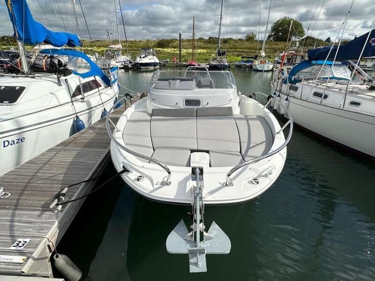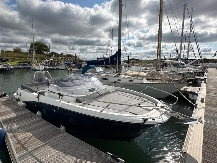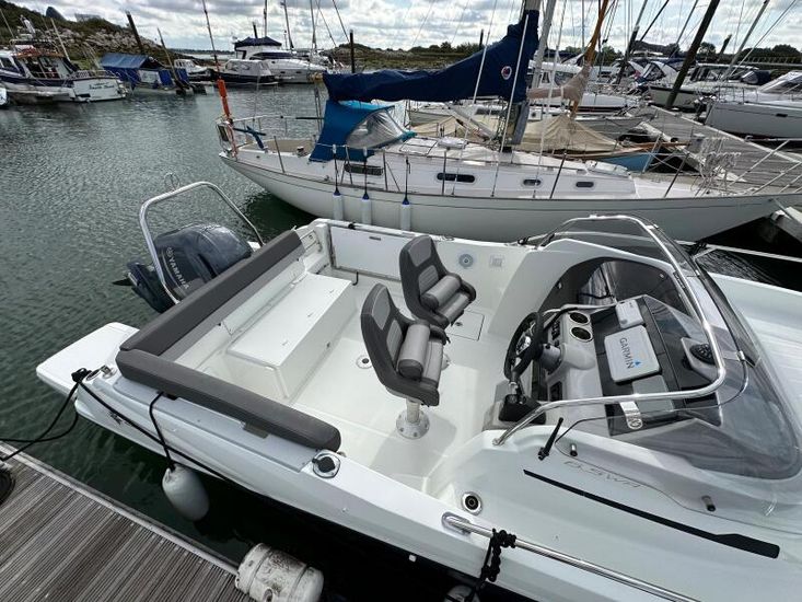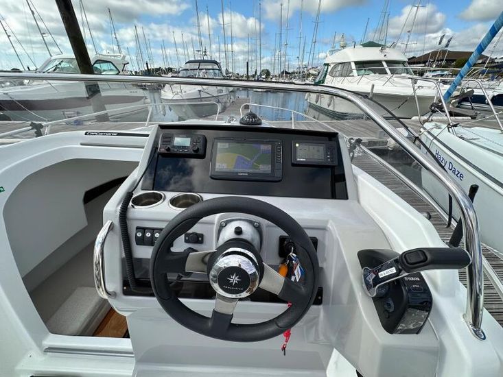 "Ginvincible" is a 2019 version of the Cap Camarat 6.5WA is a great all rounder, with good performance from her 150hp Yamaha Electronic Shift engine coupled with the ski arch, s/steel swim steps and cockpit shower making water sports easy and enjoyable.